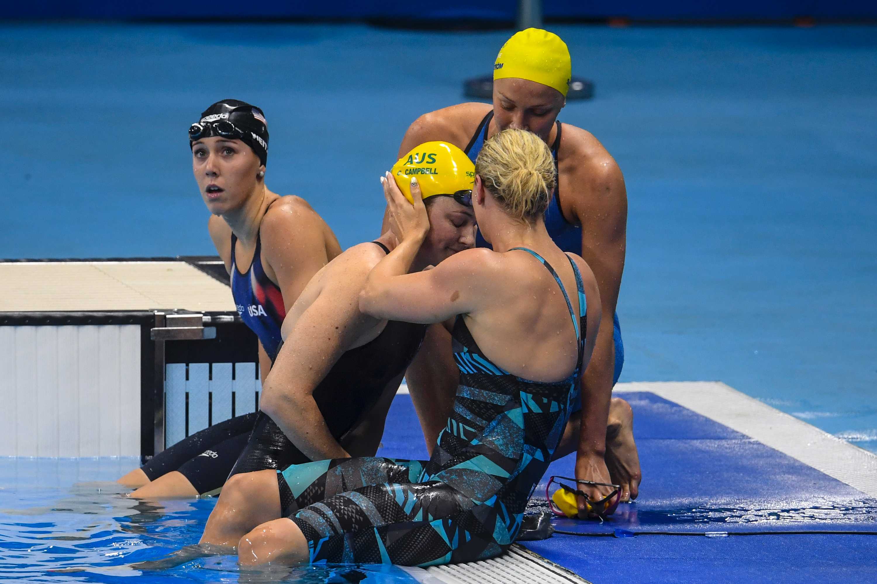 A relieved cate campbell hugs sister bronte in an emotional moment a super charged emma mckeon and an emotional and relieved cate campbell will spearhead.